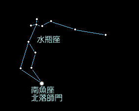 水瓶的部份可見在倒立的Y字形星星集合在一起 , 這個部份有一顆秋季唯一的1等星 , 就是南魚座的北落師門 .