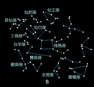 秋季只有一顆一等星 , 就是南魚座的北落師門 . 故此要找暗淡的秋季星座 , 必須先找到飛馬四邊形 , 如此順著找 , 便勉強可找到秋季星座 .