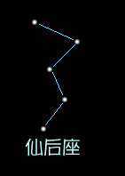 秋季的傍晚往北方天空看 , 在暗淡的銀河裡面會看到五顆亮星構成一個W字形 . 當這個W字形昇到北方天空高處 , 會倒過來成一個M字 . 這就是成為秋季的星座神話開端的古代衣索比亞的王妃 , 也就是仙后的姿態 .