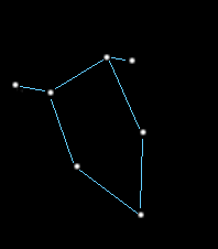 仙王座的五角形在秋季的傍晚 , 會在北極星的頭上倒立 . 最好利用比較亮的北極星及形狀容易看得出來的仙后座的w字形 , 作為目標去找尋 , 就能找到暗淡的仙王座五角形 .